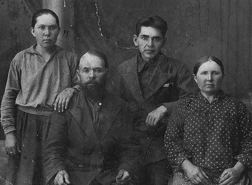 На фотографии: основатель и первый житель с.Соколовка Алексей Федорович Федоров (второй слева) с семьей.