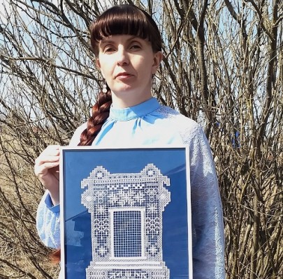 Вера Валерьевна - постоянная участница выставок декоративно-прикладного творчества и победитель различных конкурсов и фестивалей. В своём авторском проекте "Филейно-гипюрный наличник" мастерица превращает резные оконные наличники в вышитые шедевры.