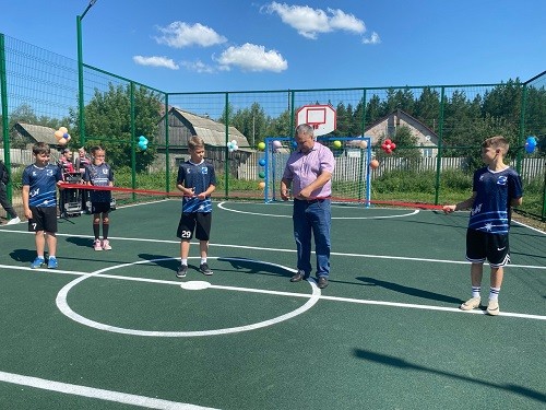 Почетное право перерезать традиционную ленту было предоставлено главе сельского поселения Борское И.Л. Самбольскому и Александру Скоркину. А право первым забить мяч в ворота новой площадки выпало Марку Полянцеву, который с блеском реализовал эту возможность.